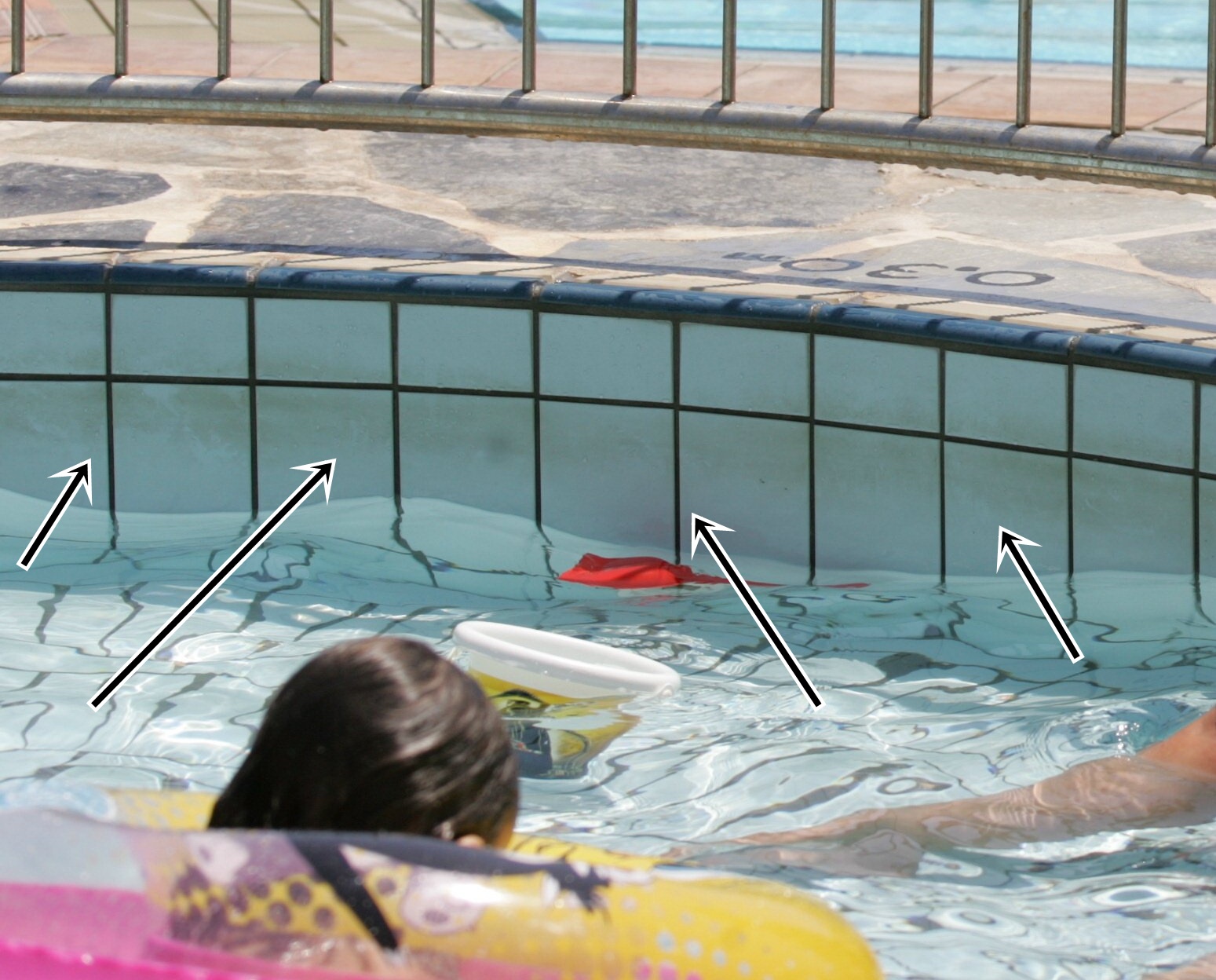 sehen war. Der Poolrand hatte auf den Fliesen einen